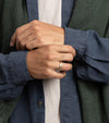 Handcrafted in London, this rugged alternative wedding band features a weathered finish and a comfort-fit concave profile. Available in a range of widths and recycled gold carats to suit your style. Optional engraving available at an extra cost.