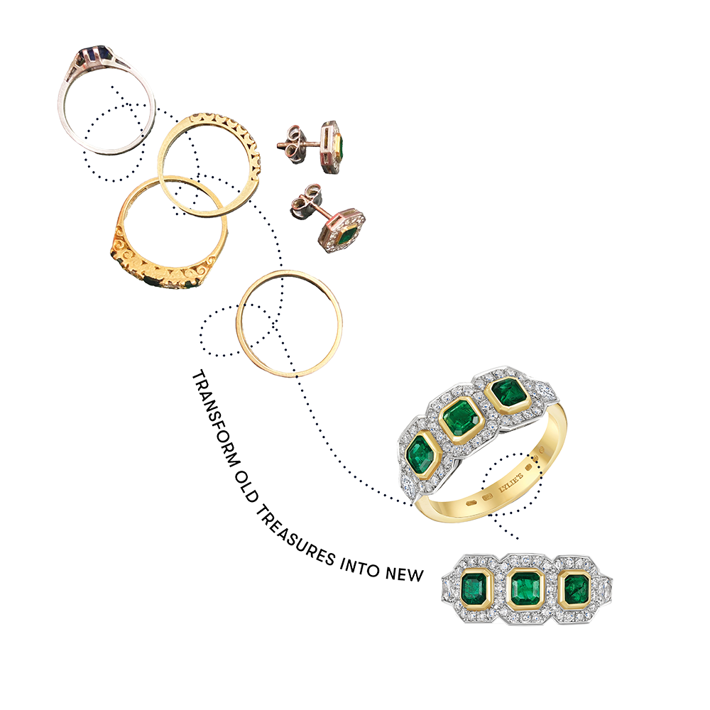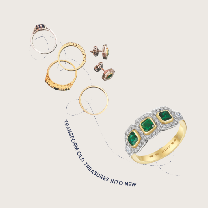 Using old ingredients and rethinking them into new designs allows the story of your jewellery to continue. We transform pieces you no longer wear into meaningful, modern designs that feel you.