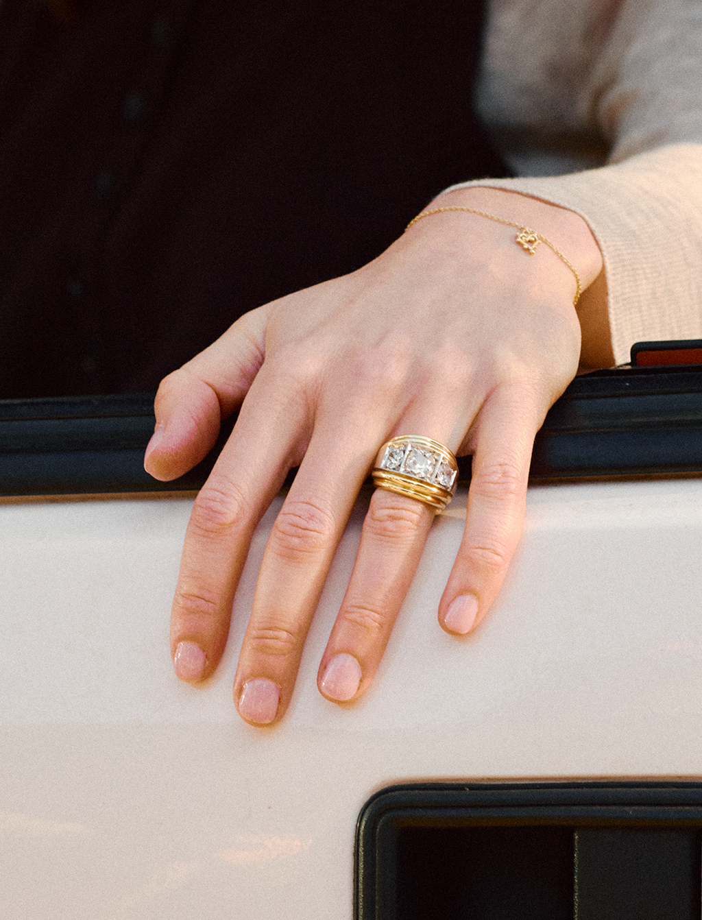 Understated elegance at its finest, our signature Etruscan-style ring is perfect for someone with an active lifestyle as the diamonds are safely encased in bezel settings.